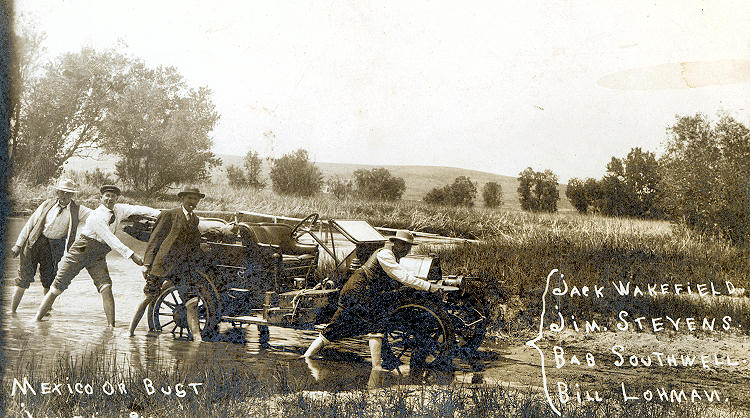 Below titled "Mexico or Bust June 5, 1910" shows the crew fording the Arickaree. These are the only two photographs that were in the collection. Was the trip real or a just for fun series as some think?