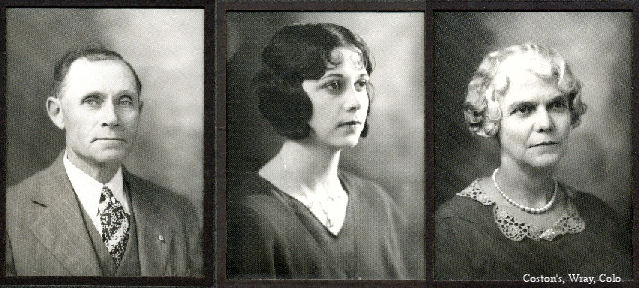 This group is in a tri-fold album found in the East Yuma County Historical Society records. Assumed to be a Coston Studios photograph. No indications on the album or on the photographs about when they were taken or who they are. Mrs. Jennie Monk thought that this is a group of Wray High teachers from the late 1920s. She identified the middle one as a Miss Helen Noble who taught the commercial courses (later known as business). Can you identify either of the others?