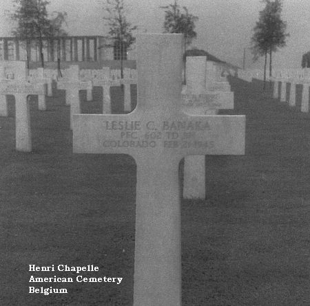 Second Son of Mrs. Anna Bell Banaka is Killed in Europe.A war department telegram, received here March 5, told of the death in action of Pfc. Leslie Banaka, 36, a son of Mrs. Anna Bell Banaka who is now employed at Hoquiam, Washington, the second time within a year that Mrs. Banaka has given a son in the service of his country. Leslie Banaka was born in Kansas and later made his home in Yuma County attending the Cement school. He enlisted two years ago and was serving with a tank division and had been overseas for nine months. His brother Sam Banaka, was killed in France in July of last year.