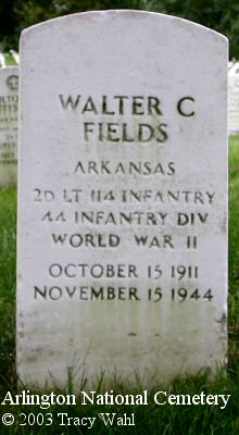 Walter Fields, a Army Lt., was killed in action November 15, 1944. He was in the 44th Division of the 7th Army.
