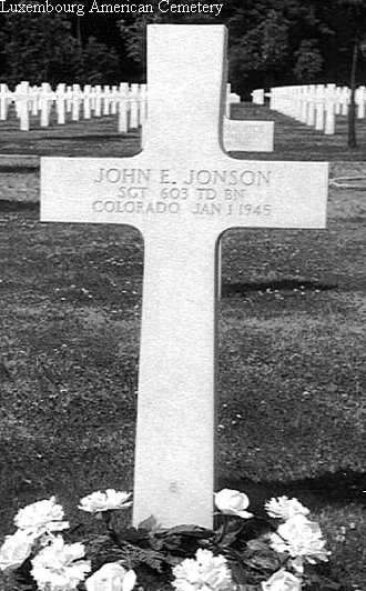 On Monday, Mrs. Edna Jonson was informed that her son, Sgt. John Earnest Jonson, 25, had been killed in action in Belgium on New Year's Day. He was with the tank destroyers and had participated in most of the American action since the invasion of France. He entered service on January 7, 1943, trained at Camp Roberts, California, Fort Lewis, Washington, Fort Ord, California, Camp Pickett and Camp Hood. He went overseas to England in June of last year. A brother, Master Sergeant Oscar E. Jonson, is serving in the South Pacific. Besides his mother, a sister, Mrs. Ida Ackelson, whose husband had been reported killed in action with the Air Corps, and a brother, Carl, a high school senior and a Wray Gazette employee, reside at Wray.